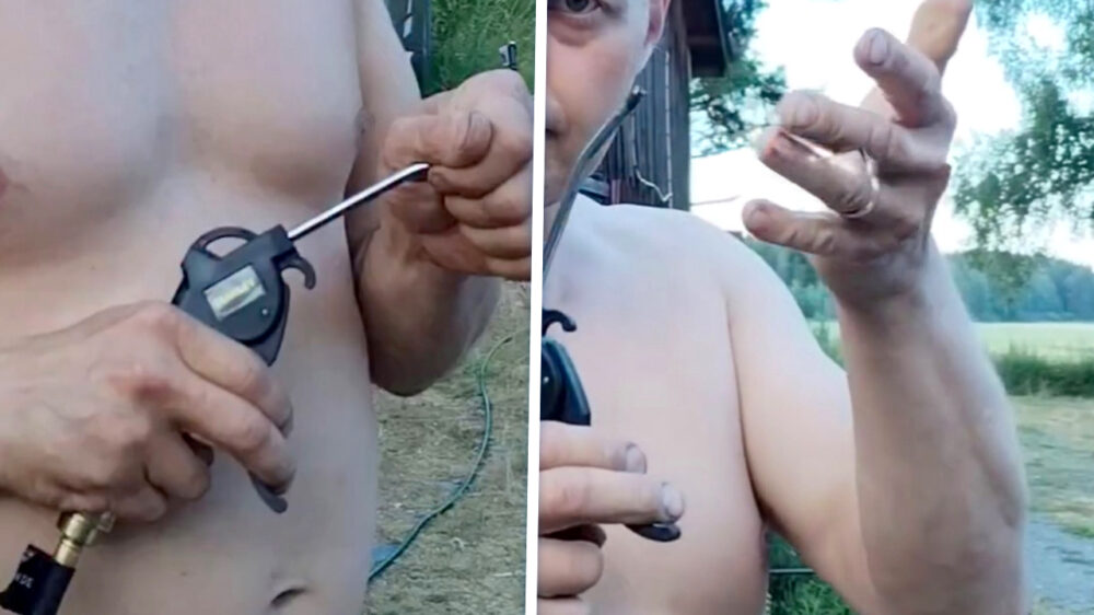 Oom Dolf speelt zijn favoriete liedje met behulp van wat perslucht