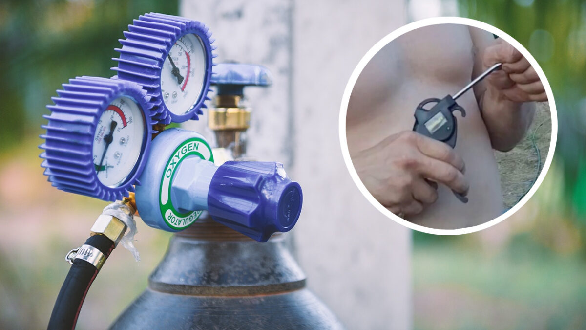 Oom Dolf speelt zijn favoriete liedje met behulp van wat perslucht