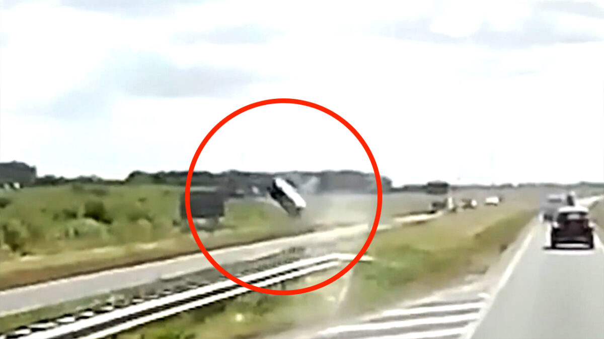 Automobilist maakt gigantische crash na een belachelijke inhaalactie