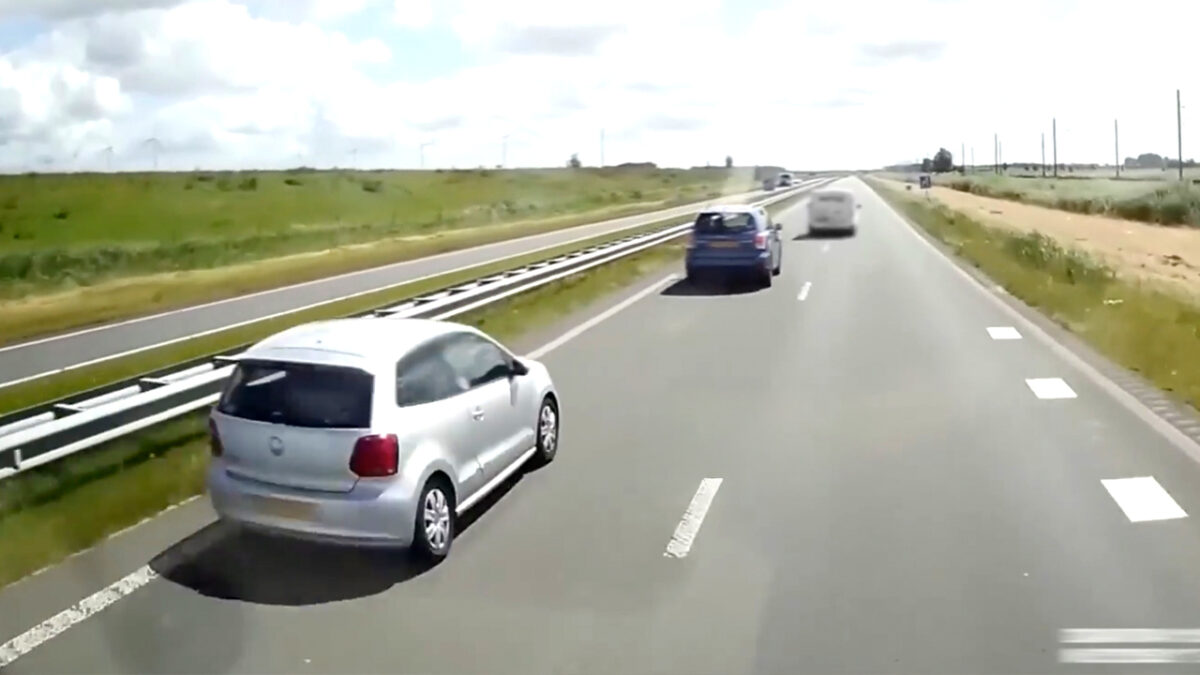 Automobilist maakt gigantische crash na een belachelijke inhaalactie