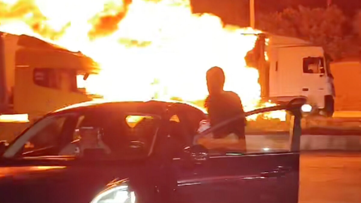 In Turkije reed een vrachtwagen afgelopen weekend rond als een soort mobiele barbecue. Het gevaarte, volgeladen met verf en andere chemische troep, vloog tijdens het rijden compleet in de hens. Alsof dat nog niet genoeg spektakel was, weigerden de remmen dienst en denderde de truck zo’n 8 kilometer lang als een vuurpijl over de weg.