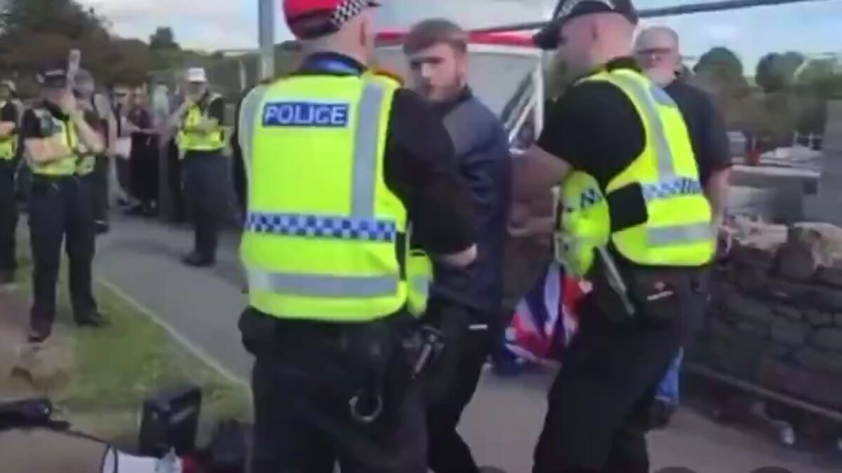 Britse knaap schreeuwt "we love bacon" en wordt gearresteerd bij moskee-protest