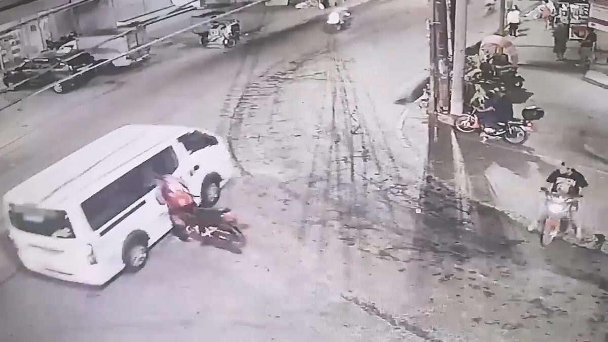 Motorrijder kopt busje en kan het dankzij zijn helm navertellen
