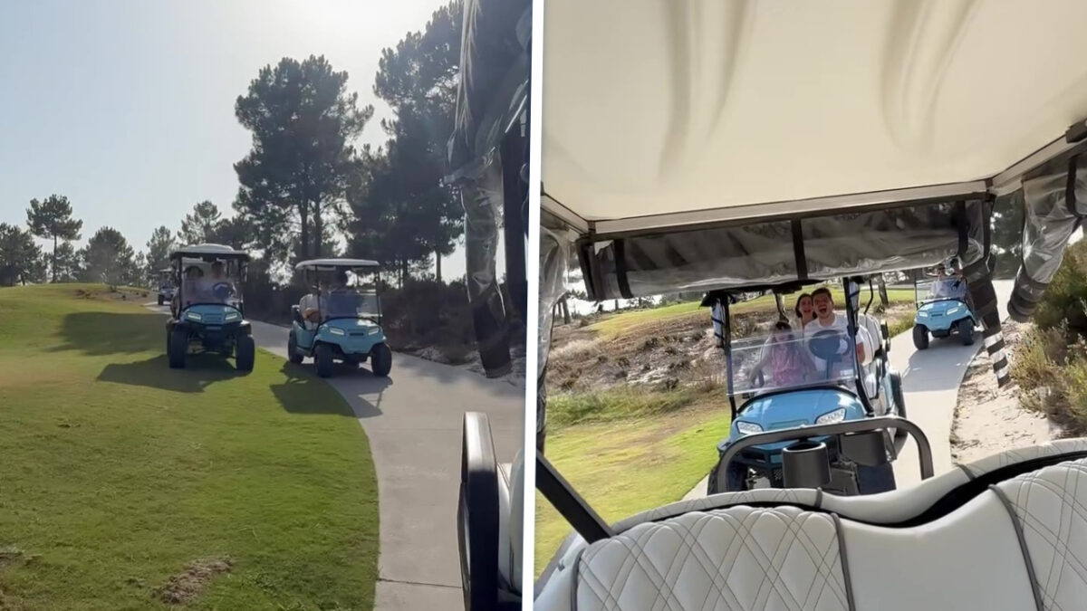 Max Verstappen kan het gewoon niet laten. Zelfs op vakantie, waar de meeste stervelingen zich bezighouden met cocktails en zonnebrand, zit hij nog steeds met z’n voet op het gas. In een golfkar trekt Verstappen hetzelfde kunstje als op de baan: plankgas langs iedereen alsof er een podium op hem wacht. Kelly Piquet zit achterin en laat het hele resort meegenieten met haar gegil.