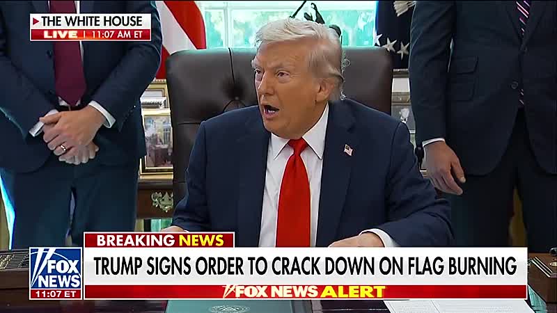 Sinds 1989 beschouwt het Amerikaanse Hooggerechtshof het verbranden van de Amerikaanse vlag als een vorm van vrije meningsuiting. Maar voor buitenlanders lijkt Trump daar een andere regel op na te houden: zij zouden hun visum kunnen verliezen en zelfs gedeporteerd kunnen worden. Het ministerie van Binnenlandse Veiligheid krijgt nu de opdracht om uit te zoeken hoe streng dit beleid zal worden gehandhaafd.