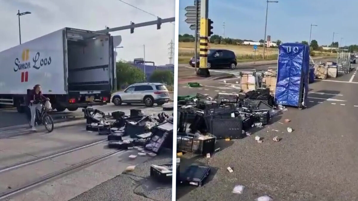 Soms zit het mee: Simon Loos-chauffeur verliest complete lading op kruispunt