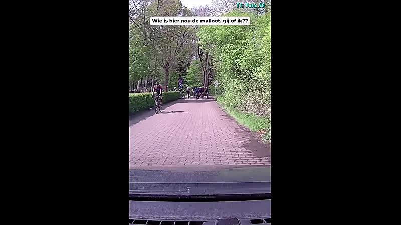Zij komen namelijk net de hoek om zetten en dan hebben natuurlijk wel het recht op een beetje ruimte zodat de hele groep in één keer waaierend de bocht door kan. Dus die handgebaren naar deze automobilist die er met een 'bloedgang' komt aanrijden zijn natuurlijk volledig terecht. Tenminste, als het aan hen ligt.