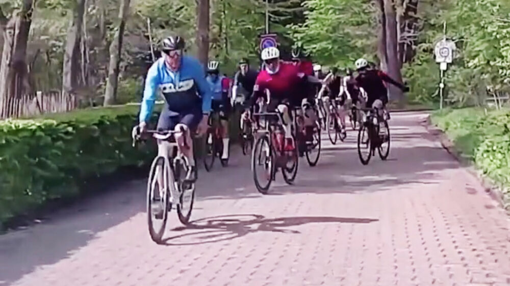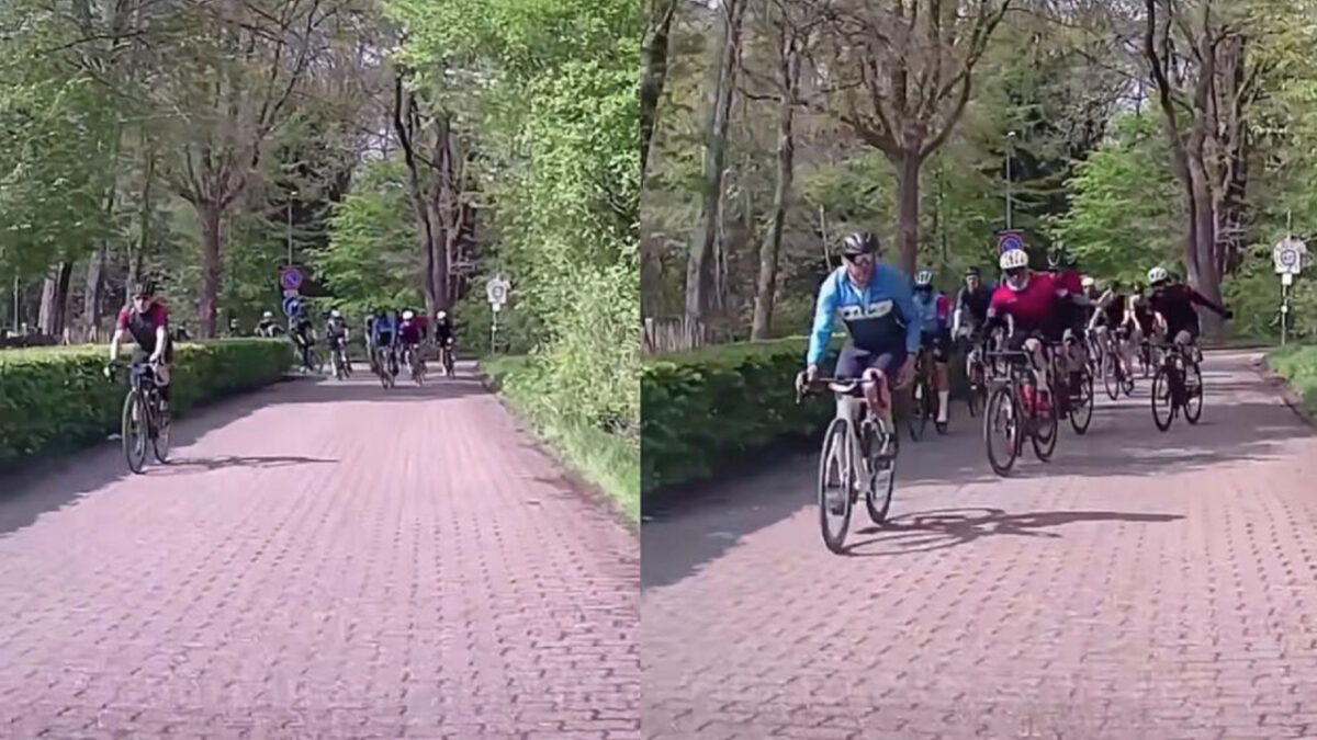 Groepje wielrenners is boos want ze willen geen auto's op HUN weg