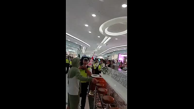 Schokkende beelden laten zien hoe het gezicht van het kind wordt afgeveegd terwijl gemaskerde demonstranten het opnemen tegen de politie in het Canary Wharf-winkelcentrum op zondagmiddag.