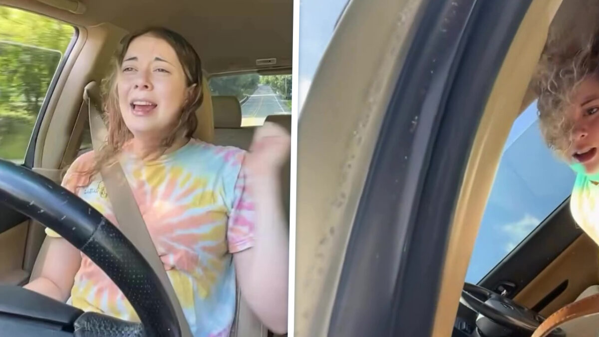 Een beetje meeblèren achter het stuur kan geen kwaad, dacht ze. Tot Britney’s Hit me baby one more time een letterlijke betekenis kreeg. Auto over de kop, glas overal, maar geen stress want de telefoon doet het nog! Ze moet natuurlijk wel eerst even checken of dit TikTok-waardig is.