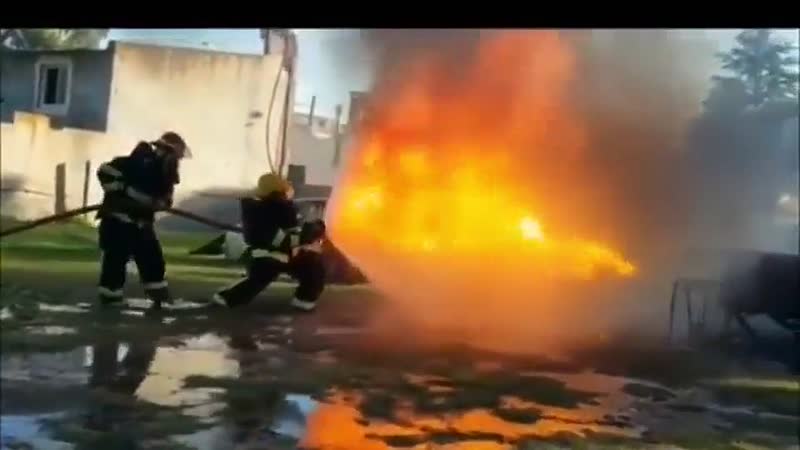 Brandweermannen doven brand door vlammen in te sluiten tijdens het blussen Random