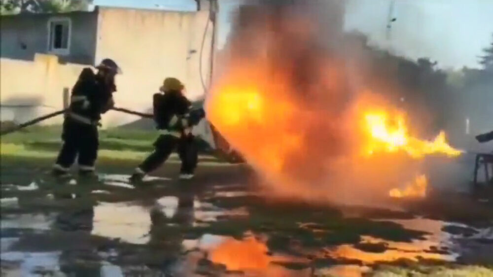 Brandweermannen doven brand door vlammen in te sluiten tijdens het blussen