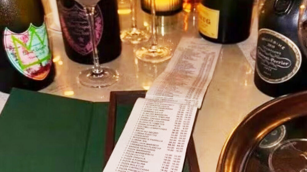 De bon bevatte ook een fooi van €5.748,90,-, want Annabel rekent tegenwoordig standaard 10% servicekosten. Gelukkig staat die als optioneel op de bon, dus technisch gezien kun je dat schrappen als je je glas water te lang moest bijschenken. Of de klanten het vrijwillig hebben betaald, zegt het restaurant dan weer niet.