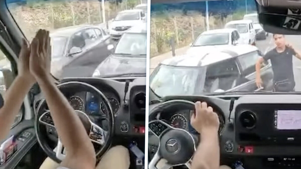 Helaas voor hem zat er een eigenwijze buschauffeur achter het stuur, die geen millimeter meegaf. Eindstand: de Mini kon linea recta weer achteruit terug naar waar ‘ie vandaan kwam. Heerlijk stukje karma op vier wielen.