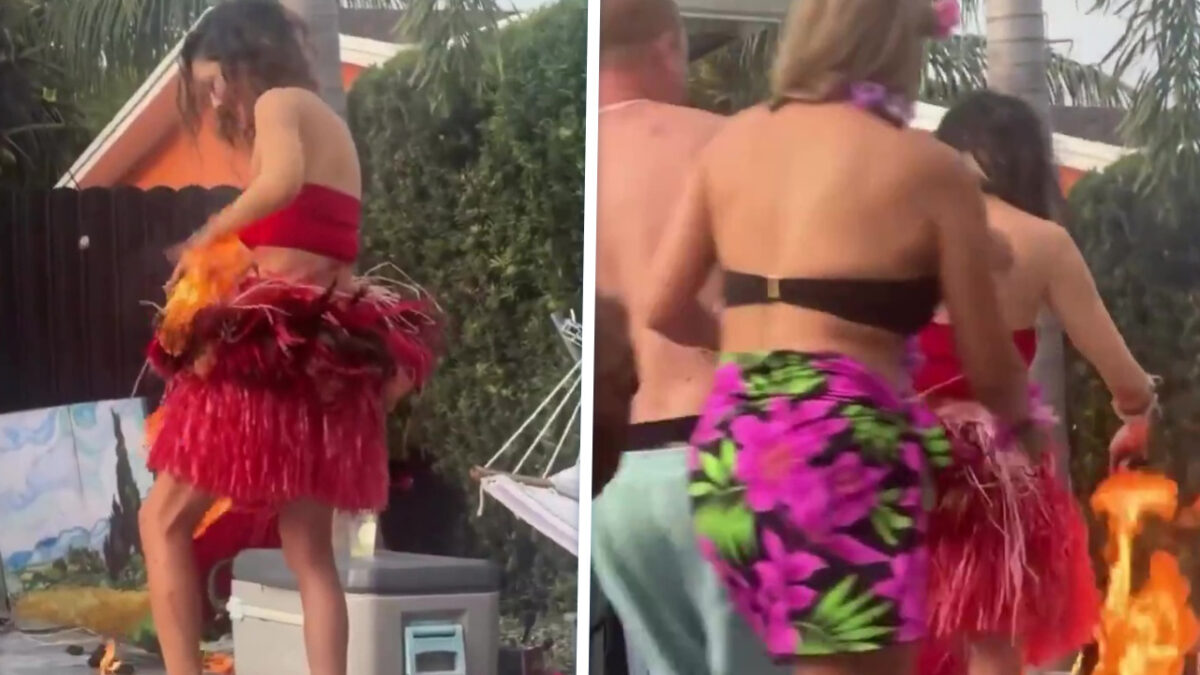 Een vurige dansmarieke dacht het publiek te trakteren op een spectaculaire show, maar die liep net wat heter af dan gepland. Terwijl de vonken oversloegen, stond ze binnen no-time ook zelf in de fik. Toeschouwers grijpen gelukkig snel in en smijten haar het zwembad in. Einde voorstelling, maar wél een nat pak.