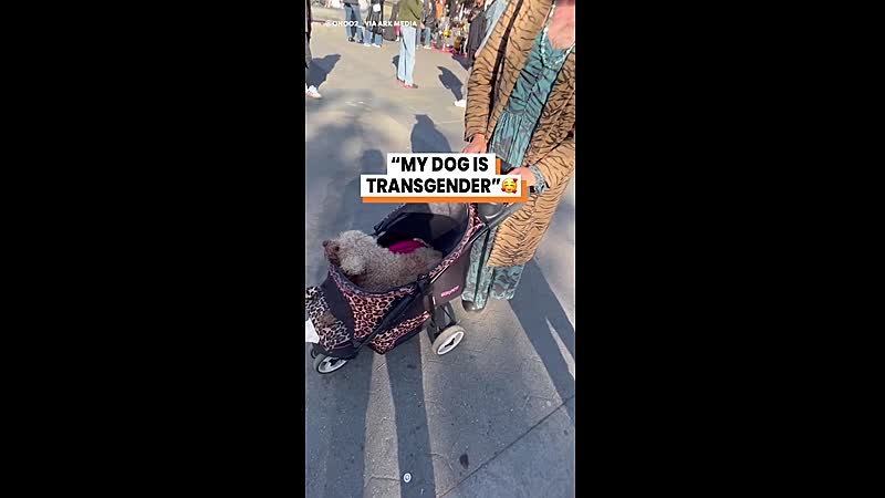 Deze meneer mevrouw persoon loopt doodleuk met z’n hond 'Pumpkin' in een kinderwagen rond en vertelt dat zijn hond trans is. Ach ja, als je viervoeter zich niet meer thuis voelt in z’n eigen vacht, dan moet de wereld dat weten. Kan gewoon.