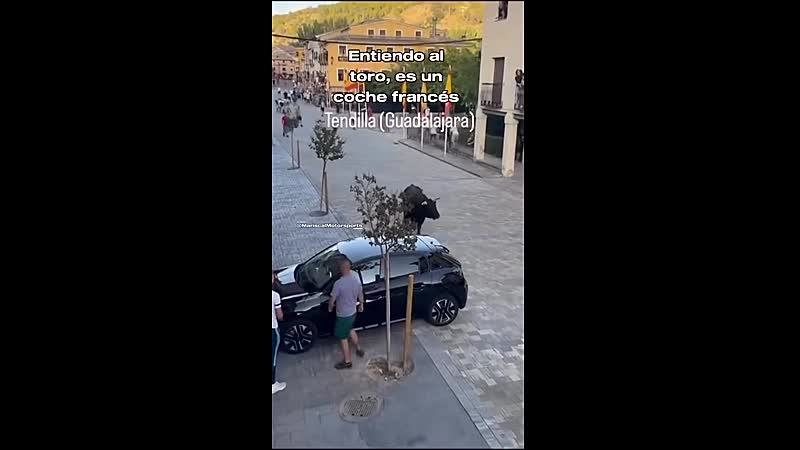 In het Spaanse Guadalajara escaleerde het tijdens 't stierenrennen enigszins uit de klauwen voor een glimmende Peugeot 208. Iemand had zijn auto geparkeerd op het parcours en een toeschouwer besloot het voertuig te gebruiken als schuilplek. Dat bleek niet het beste idee van de dag te zijn.
