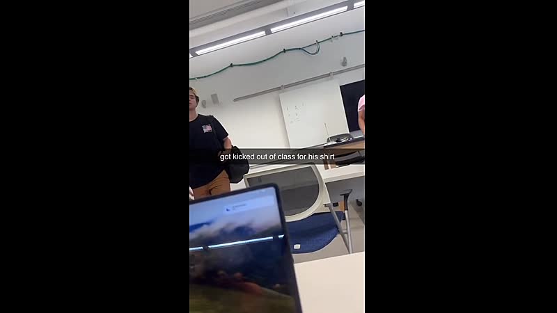 Nationale trots? Dat is blijkbaar des duivels. Deze Amerikaanse student kwam het lokaal binnen met een shirt met “This is my pride flag” en een Amerikaanse vlag, en werd meteen de klas uitgeflikkerd. Een politieke boodschap op je shirt uitdragen zou niet toegestaan zijn.
