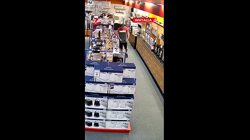 Australische winkeldief betrapt die een tv-scherm onder zijn t-shirt propt