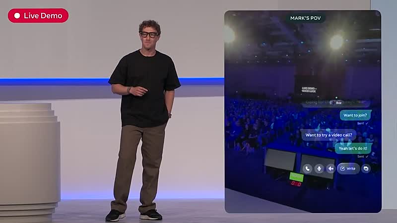 De tweede poging draaide om de Neural Band: gezichtsloze communicatie via polsgebaren. Alles leek soepel te gaan bij het sturen van een appje naar CTO Andrew Bosworth, tot het moment dat Bosworth een WhatsApp-videobelletje probeerde te starten. De bril deed niets en Zuckerberg stond hoorbaar te zuchten, kreeg de interface niet aan de praat en kapte het af.