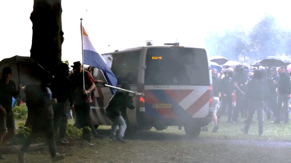 Bender als enige 'journalist' midden tussen de rellen op het Malieveld