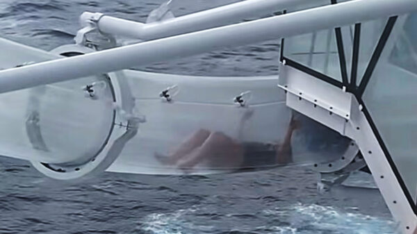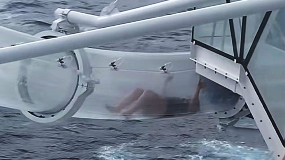Een ritje in een drijvend pretpark liep net even anders af voor een vrouw op een cruiseschip voor de kust van Canada. Ze raakte vast in een glazen buisglijbaan die zo'n 50 meter boven zee uitsteekt. Op beelden is te zien hoe ze hulpeloos op haar rug in het doorzichtige stuk ligt, terwijl ze met gestrekte armen probeert vooruit te glijden.