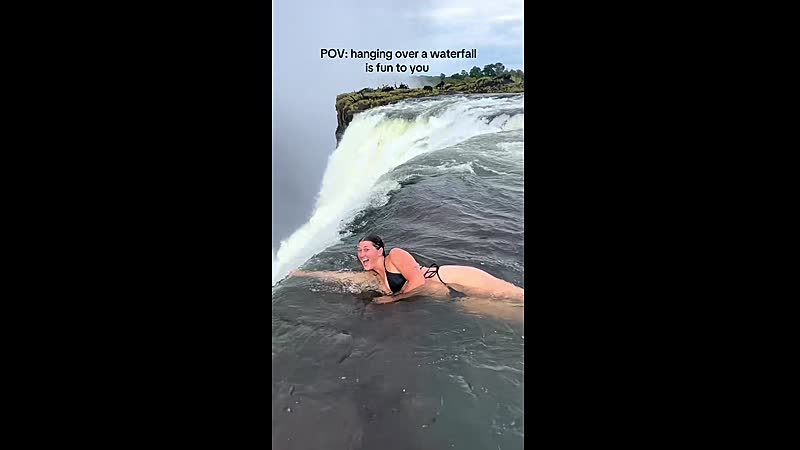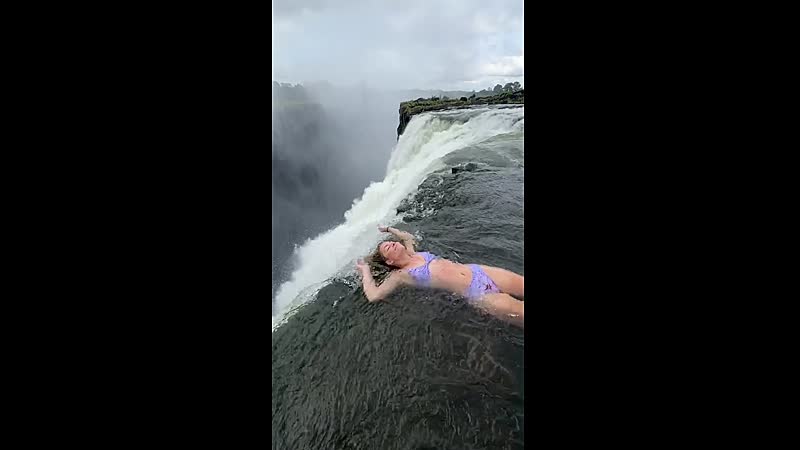 Geen standaard subtropisch zwembad voor deze dame, maar gewoon met je bikini aan doodleuk in de Devil’s Pool dobberen. Glimlachje erbij, over het randje bungelen en hopen dat je niet ter pletter valt. 👏