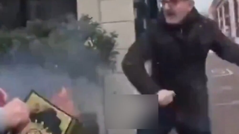 Man verbrandt Koran bij Turkse ambassade, moslim valt hem aan met mes
