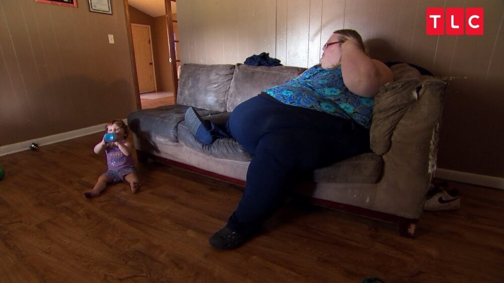 Obese dame kan niet op haar koters passen omdat ze niet door de badkamerdeur past Lifestyle