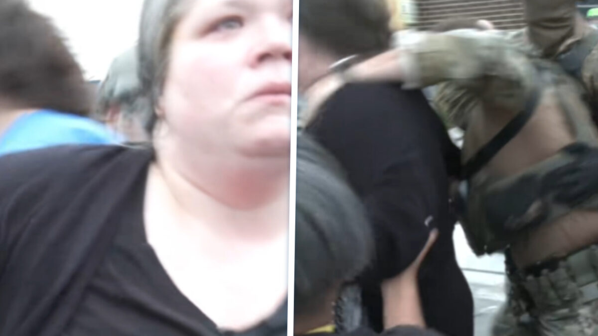 De video laat zien hoe een vrouw voor een busje ging staan dat het terrein wilde verlaten. Een agent duwde haar, waardoor ze op de grond viel. Niet veel later greep een ICE-agent haar bij de arm en sloeg vervolgens een arm rond haar nek. Zijn andere arm trok hij er strak omheen, voor hij de wurggreep weer losliet. De vrouw werd daarna in de boeien geslagen en afgevoerd.