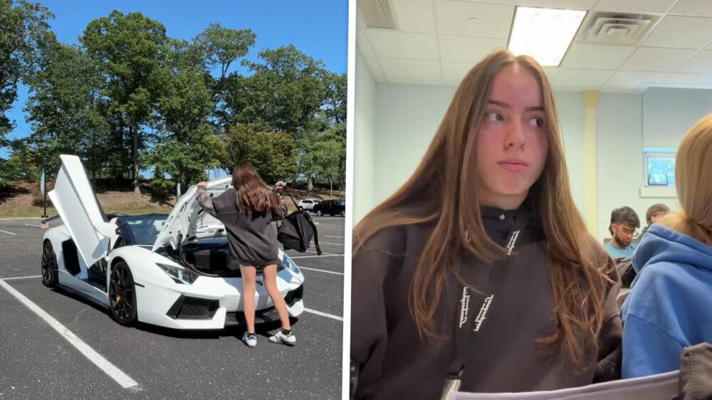 Zo ziet dus een doorsnee dag eruit als je geboren bent met een creditcard in je verwende smoelwerk. Mevrouw stapt haar witte Lamborghini in alsof het een oude Opel Corsa is, parkeert bij school, tikt een lunch van 45 dollar af en besluit dat ze ook nog wat 'noodzakelijke' inkopen moet doen. Zwaar leven hoor, bijna zielig.