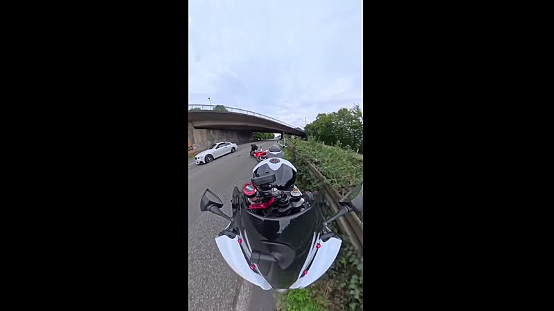 Een groep strak in leer gehesen hobby-Rossi’s scheurt onder een viaduct door, totdat één held het gas even flink opentrekt maar tegelijkertijd ook de controle over zijn scheurijzer verliest waarna hij zijn voorligger omver kegelt. Ook nummertje drie gaat tegen de vlakte maar wel op een vrij bijzondere manier.