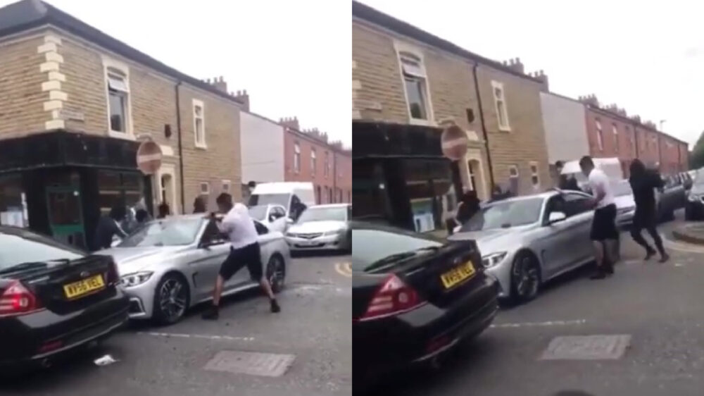 Stelletje BMW-haters beukt auto volledig naar z'n grootje