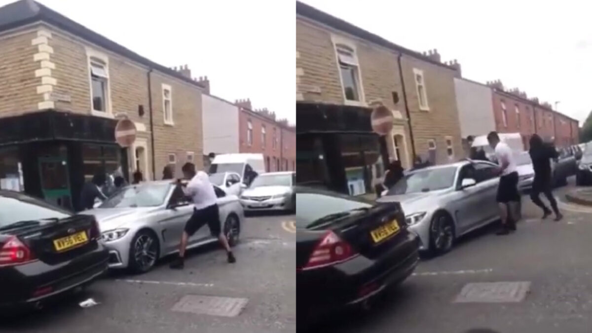 Stelletje BMW-haters beukt auto volledig naar z'n grootje