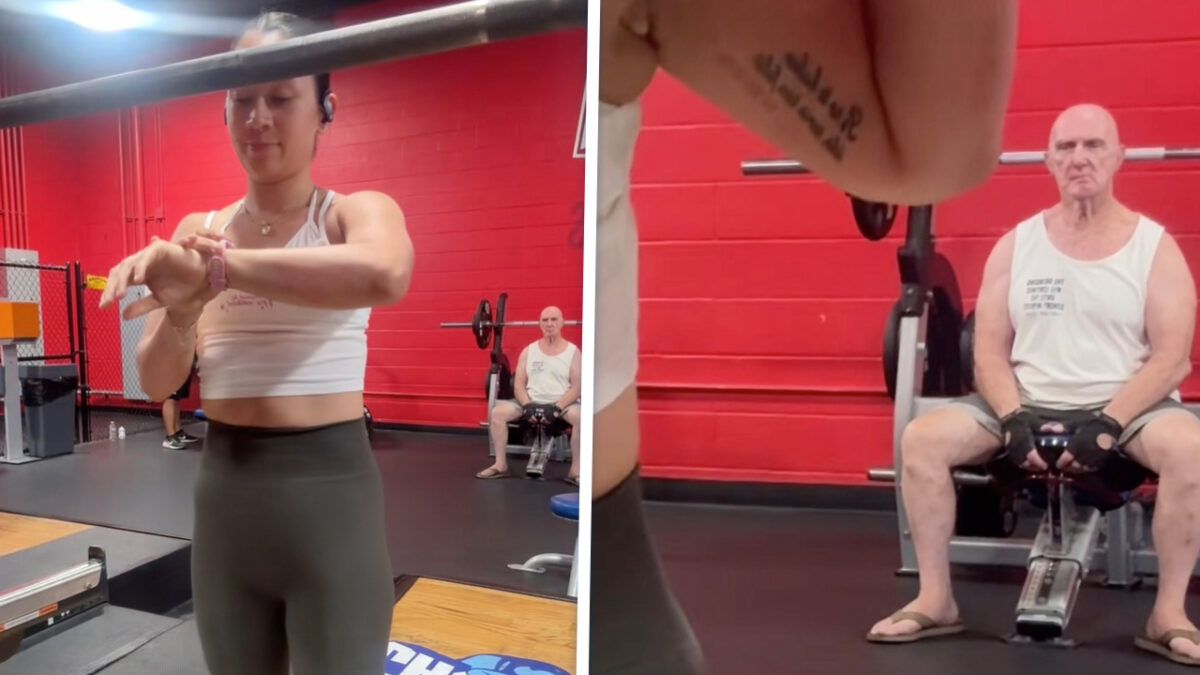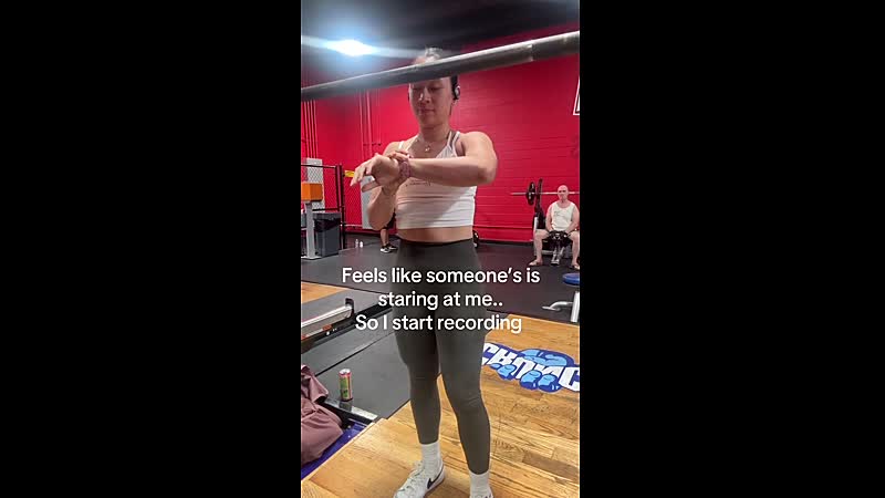 Terwijl deze dame gewoon bezig is met haar workout, lijkt opa op de achtergrond even zijn eigen leg day vergeten. Al is het natuurlijk ook goed mogelijk dat hij zich gewoon verbaasd over al die influencers vrouwen die tegenwoordig hun hele sportsessie filmen alsof ze auditie doen voor Love Island: Fitness Edition.