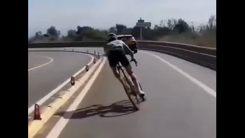 De Spaanse wielrenner Francisco Galvan heeft zichzelf lekker in de nesten gewerkt door iets te enthousiast met zijn fiets te spelen.