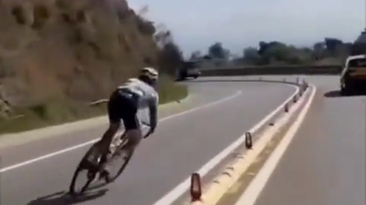 Wielrenner Francisco Galvan springt over middenberm en riskeert straf