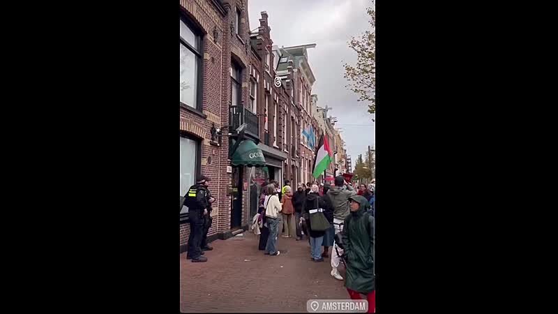 Tussen de vlaggenzeeën en slogans dook een poster op met de tekst “Honour the martyrs, long live the resistance”, een directe verheerlijking van Hamas, midden in het hart van Amsterdam.