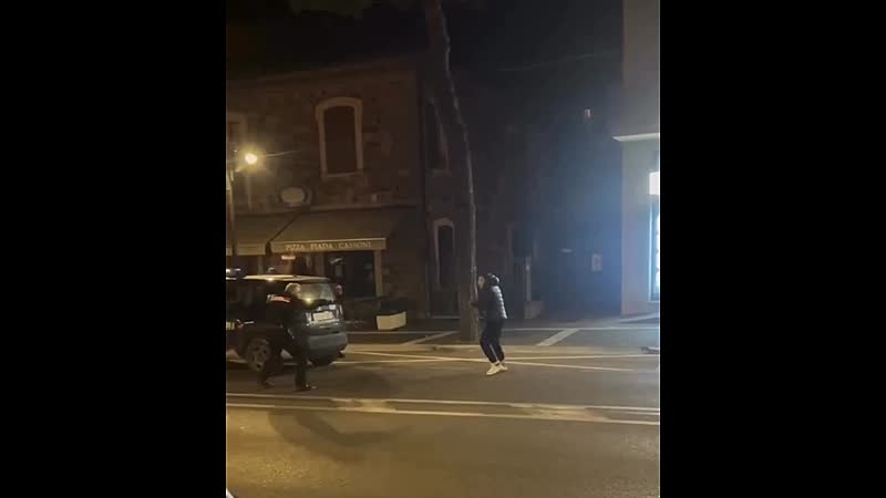 De agent probeert het nog sportief te houden en mikt eerst op de voeten van de messentrekker: een zeldzaam staaltje coulance. Maar de kogels ketsen over het asfalt langs hem af, bijna in de richting van de man die het tafereel bibberig met zijn telefoon vastlegt.