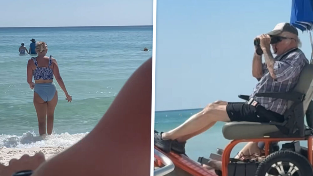 Zon, zee, strand… en weer een ouwe rakker met verrekijker op standje turbo. Terwijl de rest van het strand ligt te bakken of onschuldig een pootje baadt, zit opa strategisch gepositioneerd in z’n all-terrain relaxmobiel, turend over de horizon.