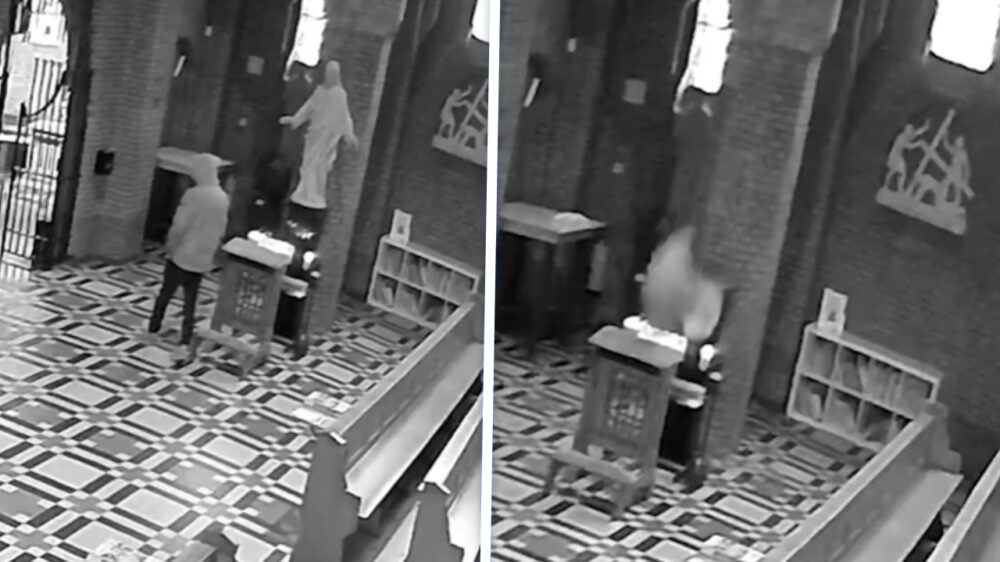 In de Utrechtse Gerardus Majellakerk heeft een onbekende bezoeker begin oktober een Christusbeeld gesloopt. De man kwam zonder iets te zeggen binnen, duwde het standbeeld van ruim een meter om en koos daarna het hazenpad. Het beeld kwam op een knielbank terecht, wat de schade beperkt hield: alleen een arm brak af.