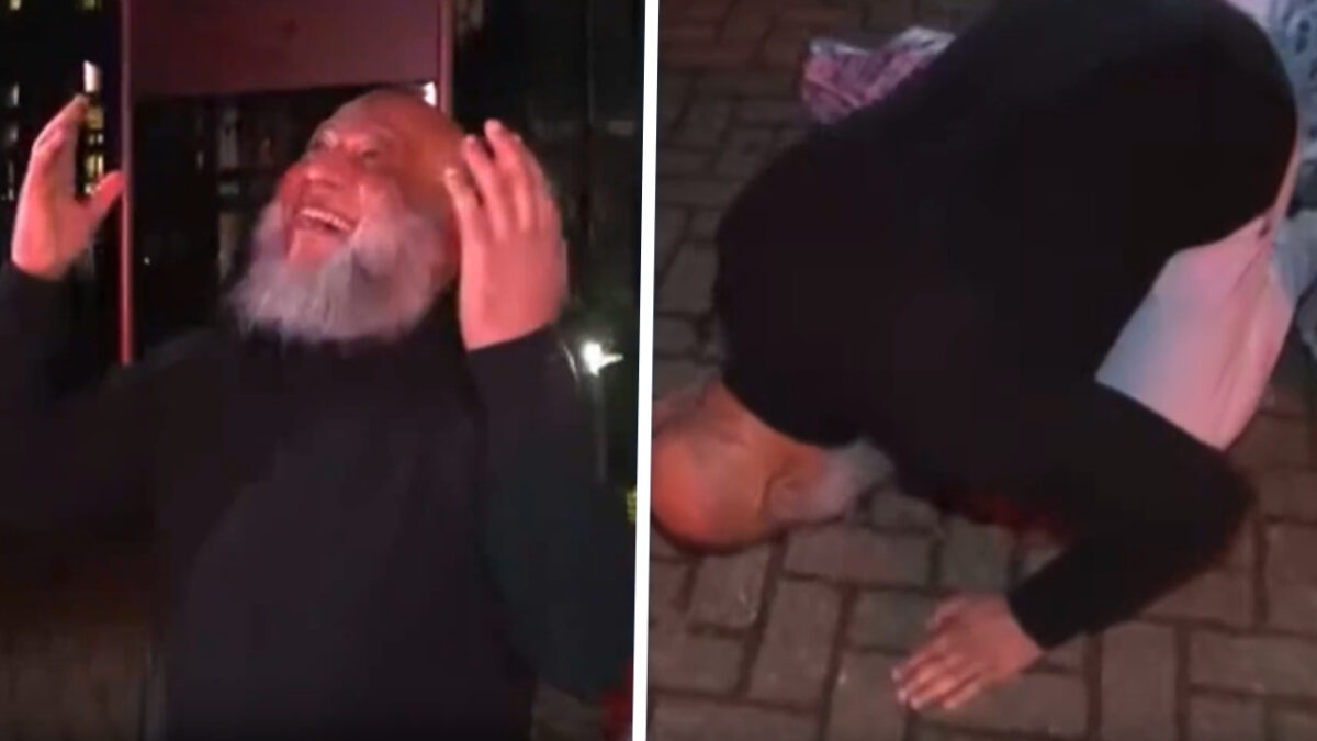 Hier het gelukzalige moment waarop Trabelsi voor het eerst weer vrijheid proeft: