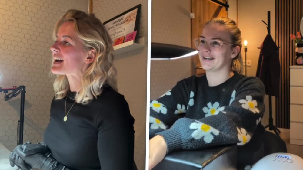 Ondertussen in de nagelstudio van Elsemiek liep het bezoekje van een klant nét even anders dan gepland. Gewoon een onschuldige vraag “Mag ik u aanraken?” maar binnen een paar seconden loopt het uit de klauwen! Flauwe vrouwenhumor op z’n best.