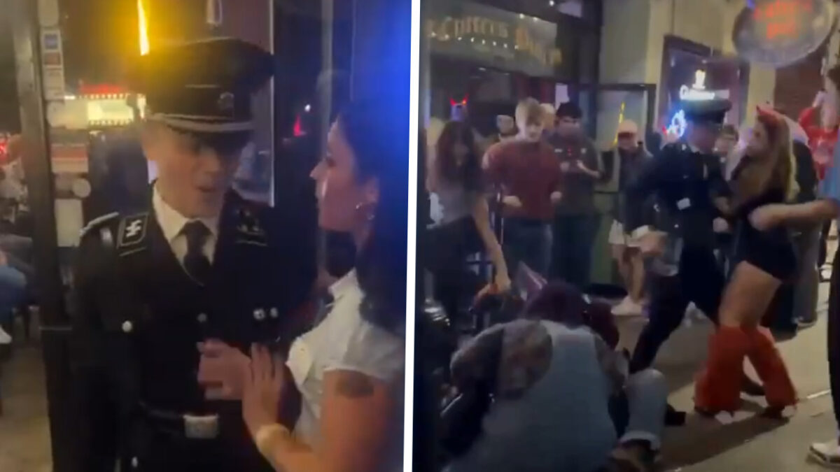Kneus in nazi-uniform breekt neus van vrouw bij een café in Georgia