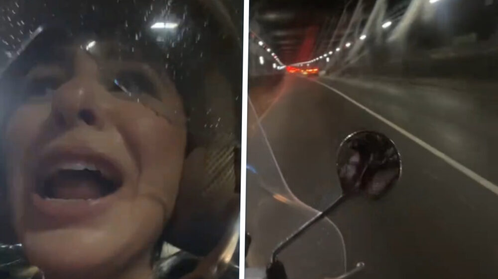 Twee scooterchickies besloten dat vandaag een mooie dag was om de snelweg eens te verkennen en jawel; ze kozen natuurlijk meteen voor de linkerbaan. Want als je het doet, doe het dan goed!
