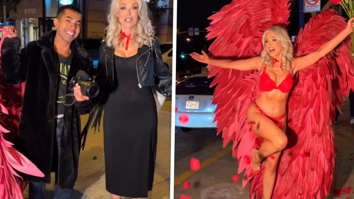 Kathy Jacobs bewijst dat je ook op 61 nog prima een showtje kunt geven op straat. Terwijl de meeste mensen van die leeftijd aan het zoeken zijn naar hun leesbril, trekt het "hoogbejaarde" supermodel doodleuk haar jurkje uit en staat ineens in bikini alsof het de meest normale zaak van de wereld is.