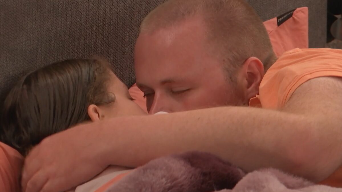 Er hing al wat spanning in de lucht, maar toen hun lippen eenmaal contact maakten, ging bij Mirjam blijkbaar de thermostaat meteen op standje sauna.