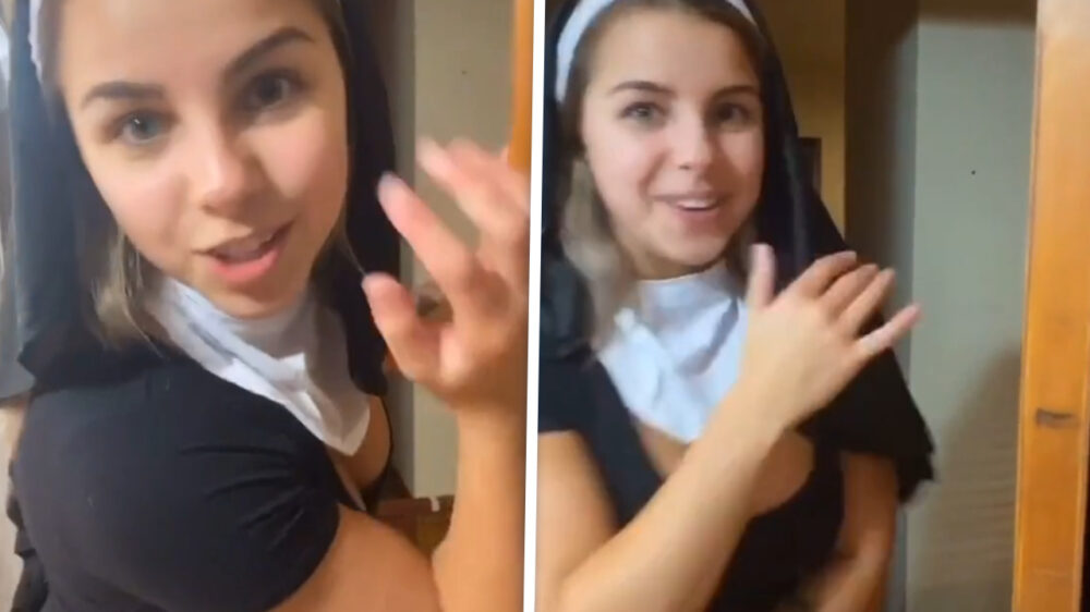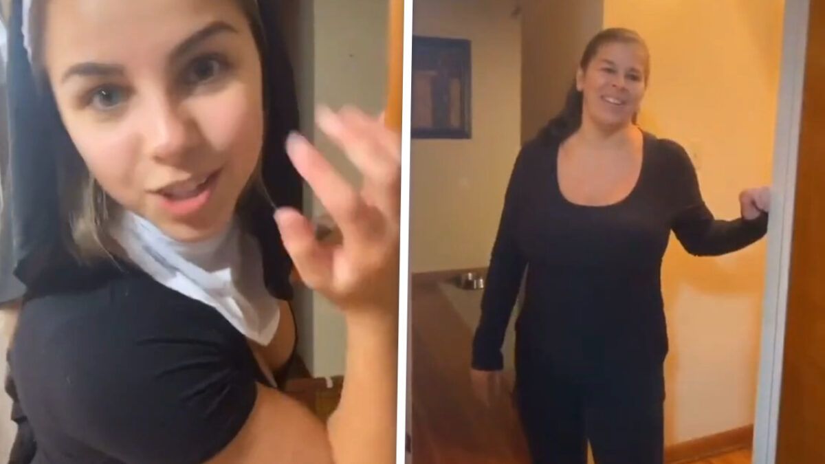 Sommige dochters pakken Halloween nét wat anders aan dan mam had gehoopt. Terwijl moeder waarschijnlijk dacht aan een schattige pompoen of een veilig heksje, besloot dochterlief de heilige kant op te gaan, maar dan met flink wat zondige details. 😍