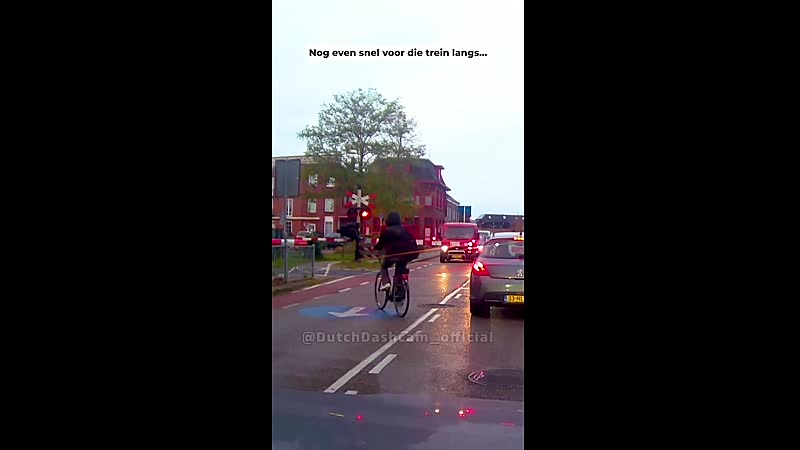 Een fietsster dacht slim te zijn door nog snel het spoor over te steken, precies op het moment dat de trein al toeterend kwam aanstormen. Het scheelde niks of ze had meegereisd zonder kaartje. Gelukkig liep het goed af.