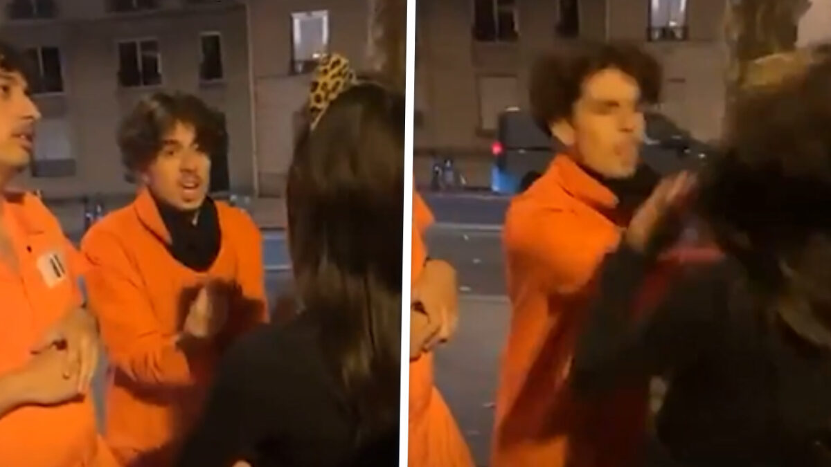 Een video van Halloweenavond in Frankrijk circuleert op X. Daarin zie je hoe een man, verkleed in een oranje gevangenispak, een vrouw beledigt en haar vervolgens gewelddadig omver duwt. De aanleiding van het incident is onduidelijk. Wel zegt het meisje, net voordat ze tegen de vlakte gaat, dat ze hem in de ballen gaat trappen. Lokale berichten omschrijven de aanvaller als iemand van buitenlandse achtergrond, wat opnieuw het debat over migratie aanwakkert.Op X regent het cynische reacties: "Heb geen medelijden. Hier heeft ze zelf voor gestemd."